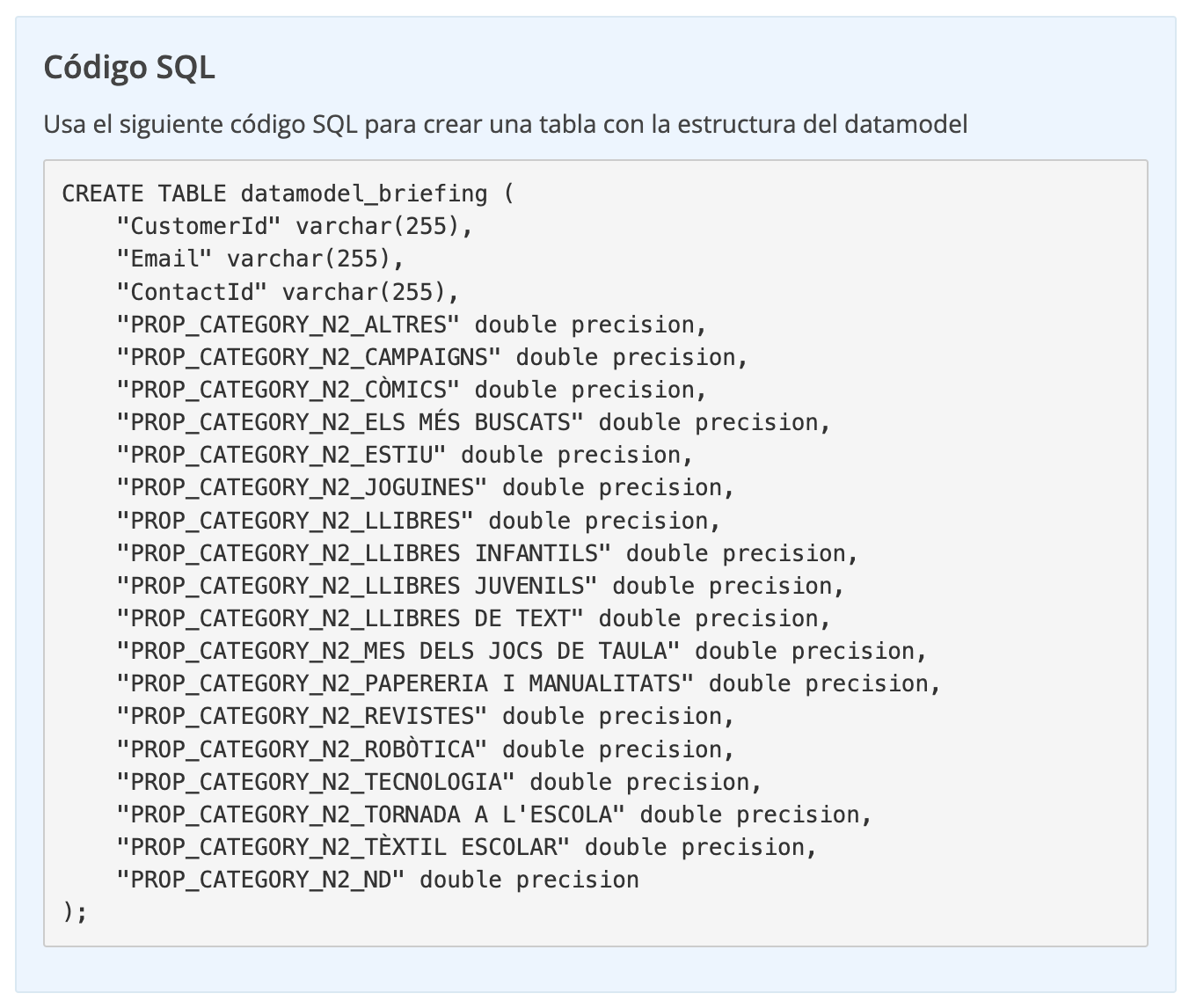 "PROP_CATEGORY_N2_LLIBRES INFANTILS" double precision,