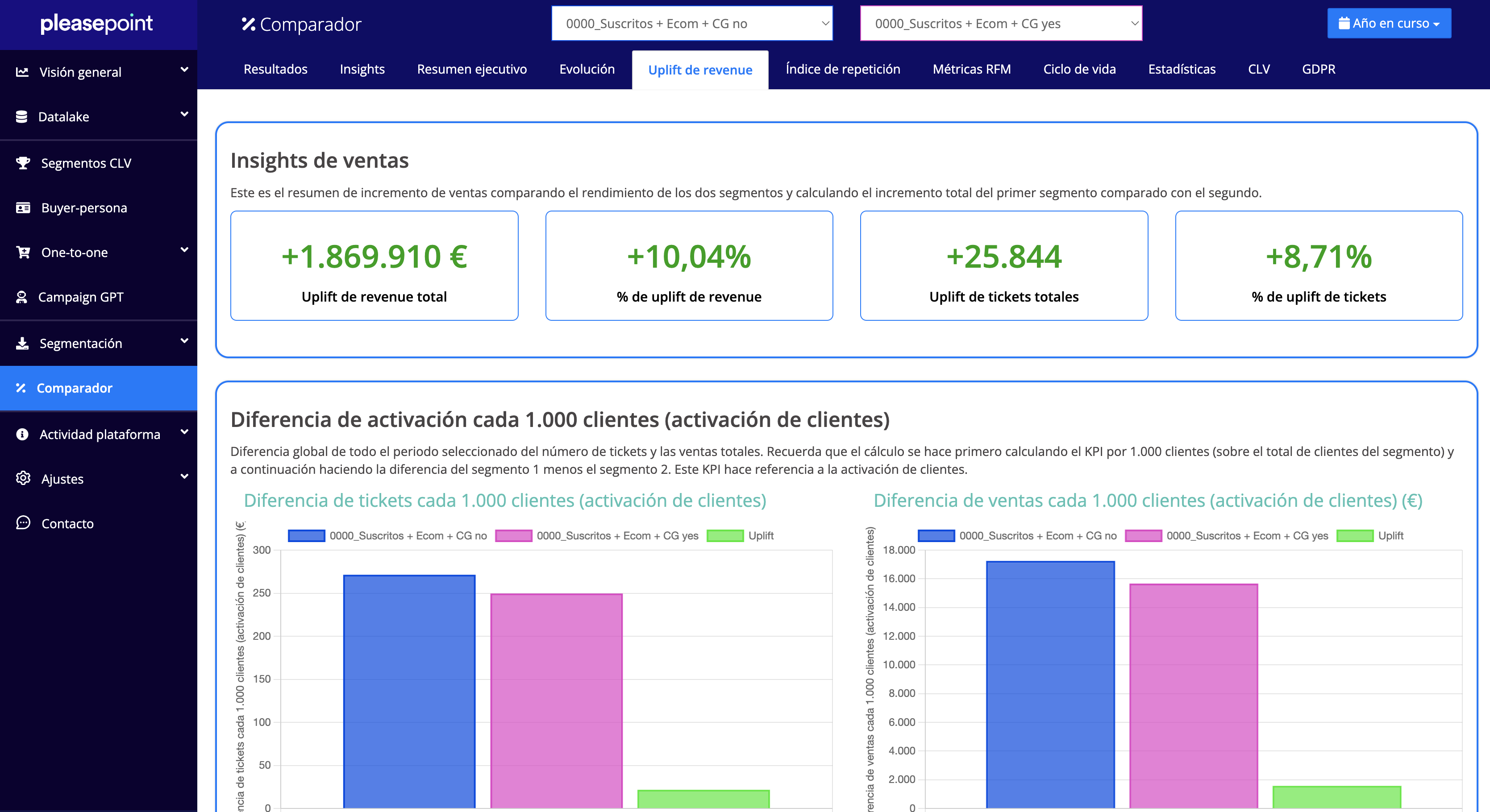 To illustrate the impact of these personalization strategies, we compared the results with a control group that did not receive personalized impacts. During the current year, we observed a significant increase of €1.8 million in sales, representing an impressive 10% growth.