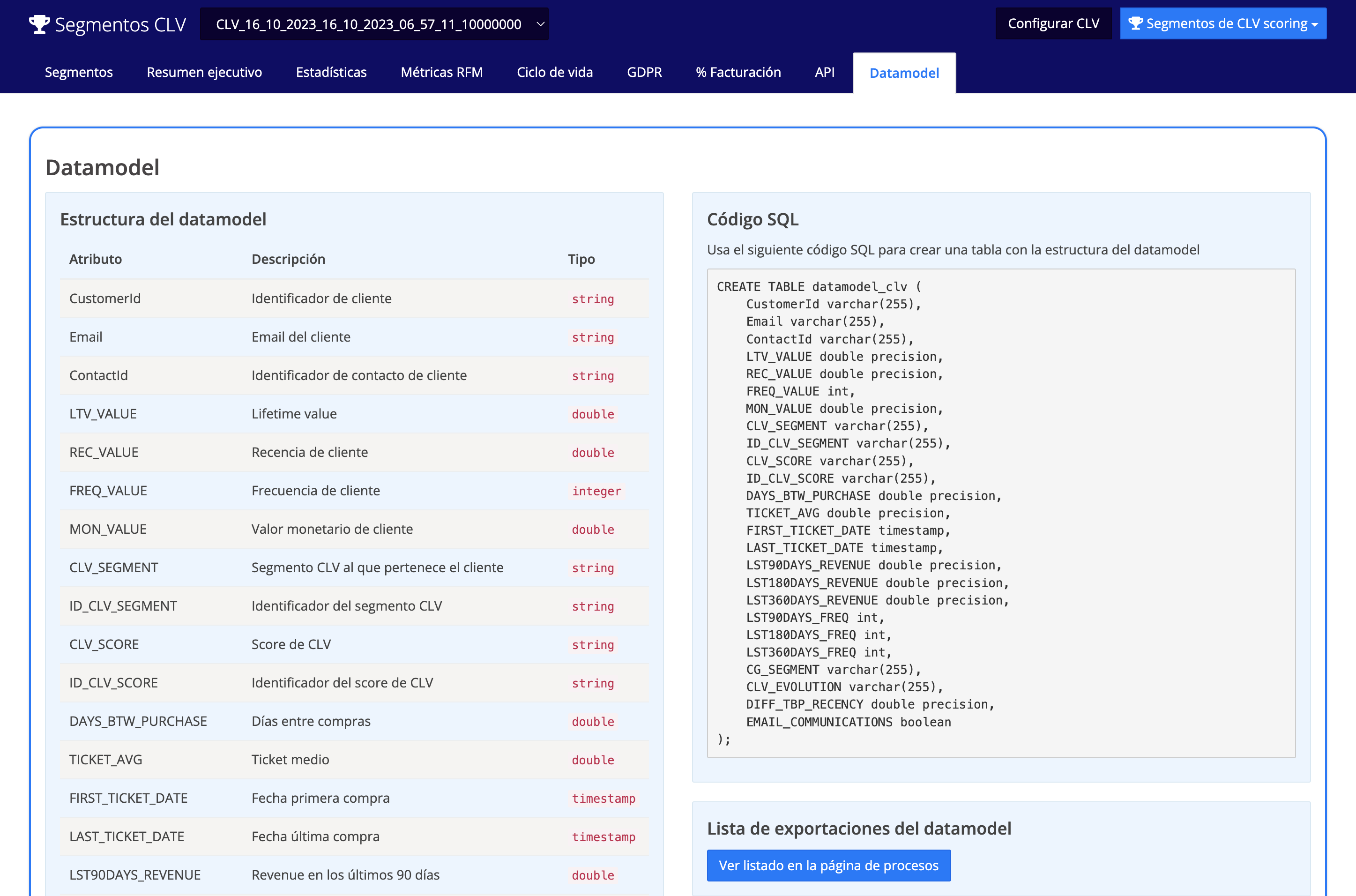 In the previous screenshot, you can see the information that will enrich each of your customers with the CLV-based customer classification datamodel. If you want to see in detail how to use this datamodel, you can read this article.