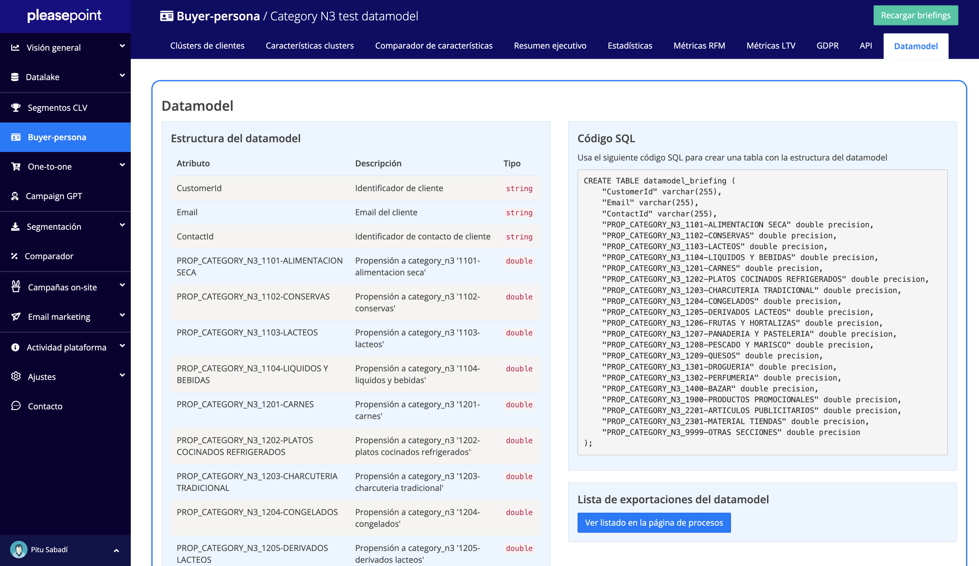 In this image, you can see the structure, in this case variable, of buyer persona models to identify customers with similar purchase propensities, behaviors, or consumption habits. If you want to see more details on how to use buyer persona datamodels, I recommend this blog post.
