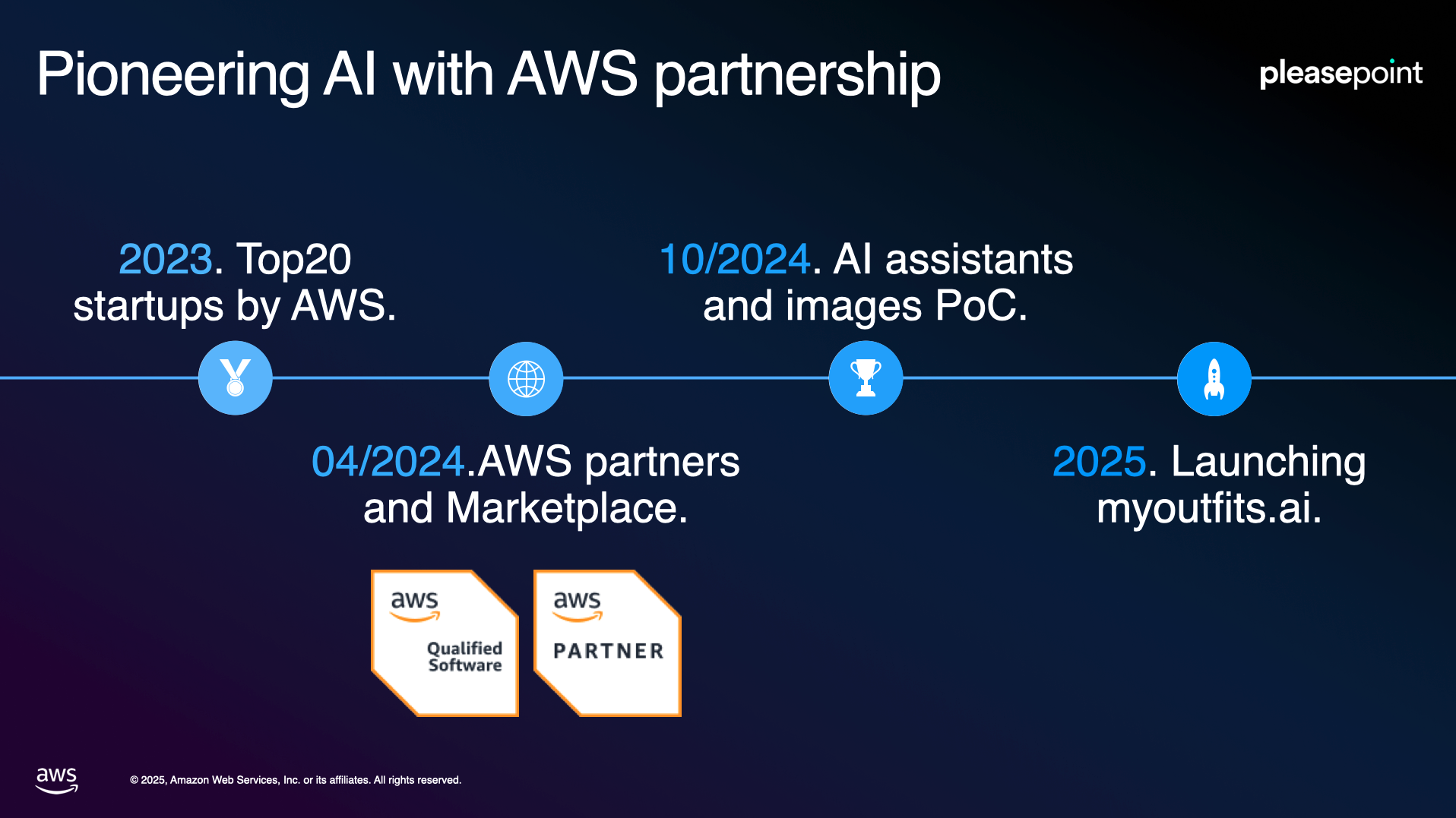 La presentación destacó cómo el partnership con Amazon Web Services ha sido fundamental para el desarrollo de MyOutfits. Desde 2023, cuando Pleasepoint fue seleccionada entre las 20 startups más innovadoras del sur de Europa por AWS, hasta el lanzamiento de MyOutfits en 2025, esta alianza ha permitido: