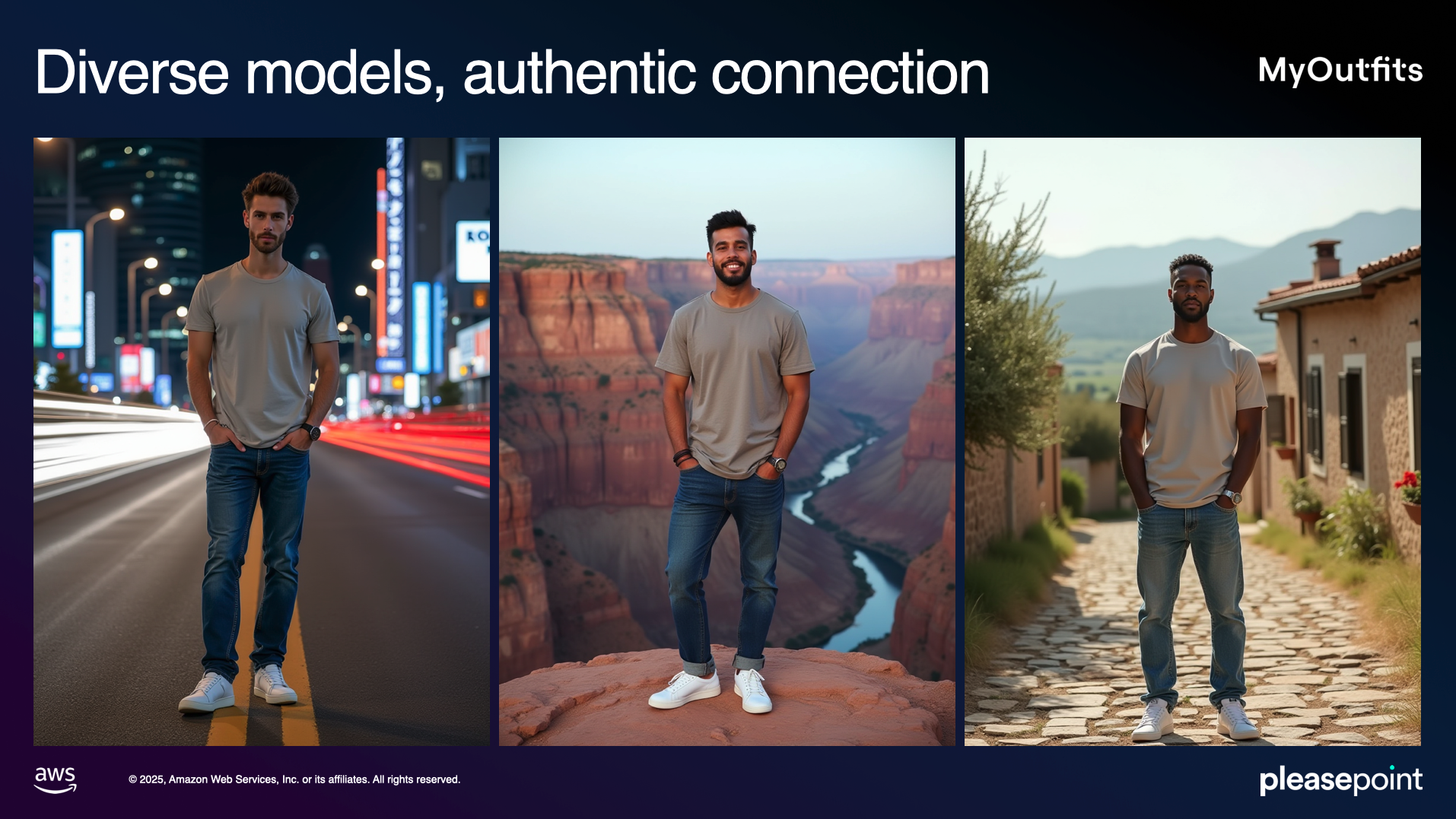 "Junto a nuestros partners de Pleasepoint os presentamos en primicia a MyOutfits. La primera plataforma que os va permitir generar infinidad de imágenes hiperrealistas y personalizadas: desde el setting, pasando por los modelos y todo ello con un encaje de producto perfecto. Imágenes libres de derechos y listas para usarse en menos de 2 minutos."