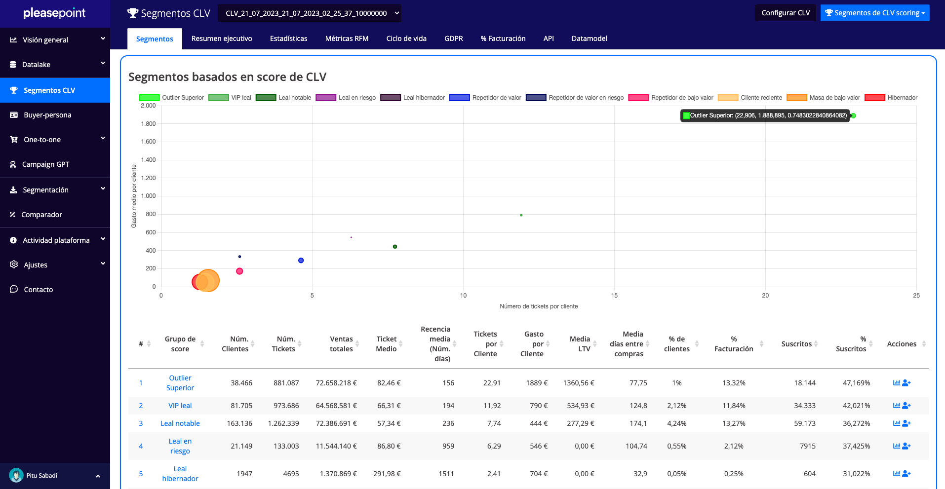 Pleasepoint clasifica para ti los clientes en los distintos segmentos para que puedas crear experiencias personalizadas según el ciclo de vida de cada cliente.