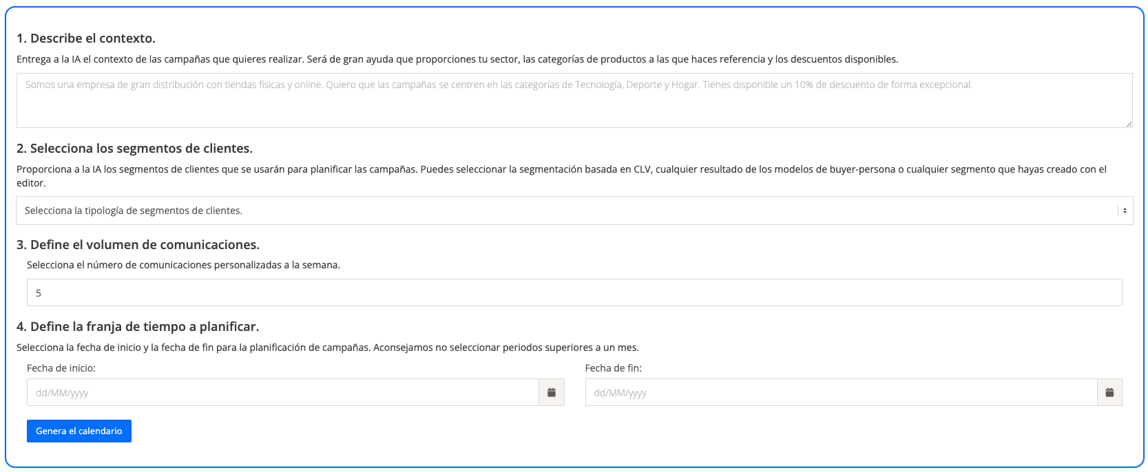 Recuerda que Campaign GPT te permite explotar los insights sobre los patrones de consumo y proponerte las mejores acciones personalizadas para cada uno de tus clientes. Tan sólo tienes que completar este formulario: