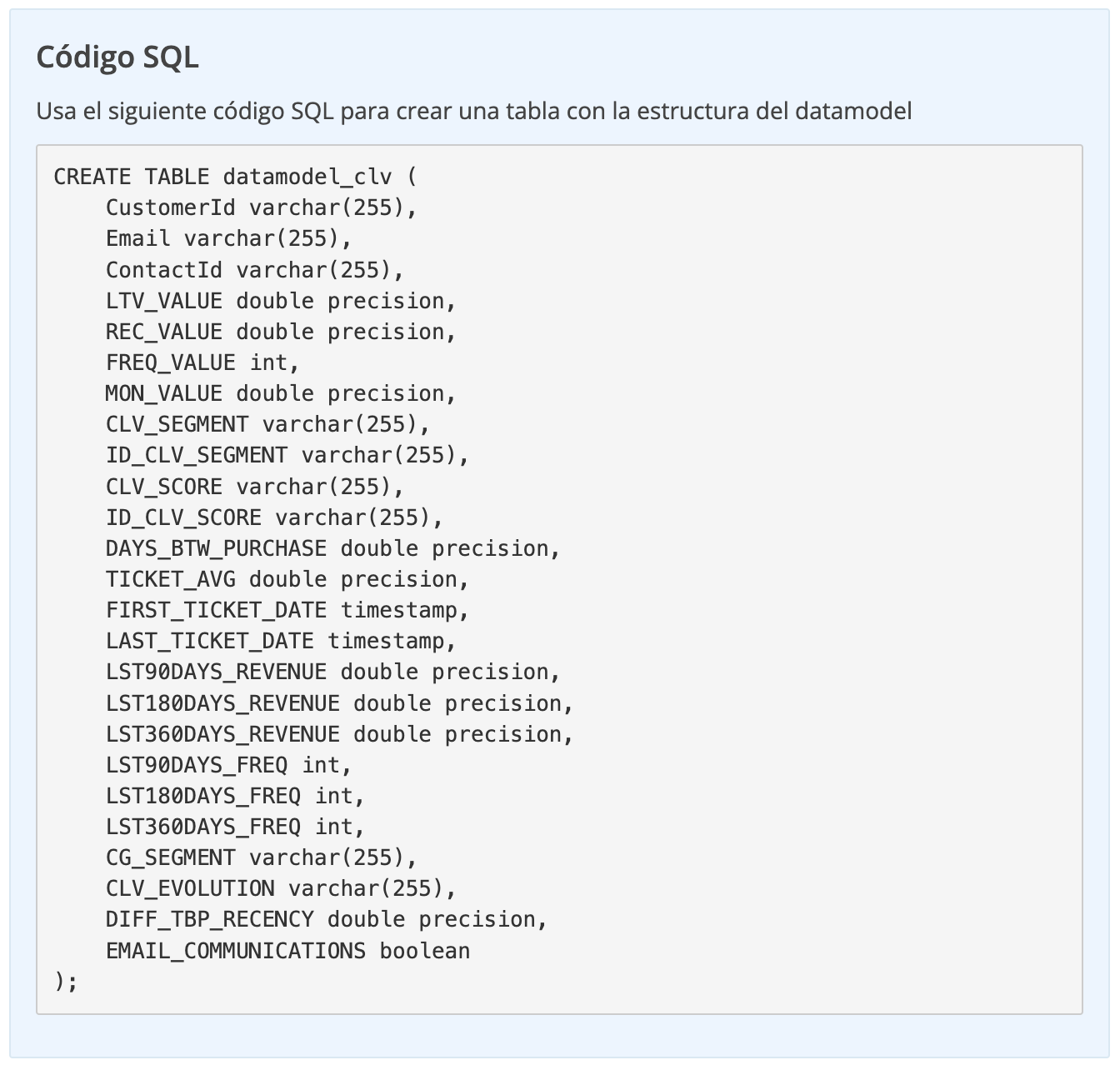 A continuación, se muestra la estructura detallada del Datamodel de CLV: