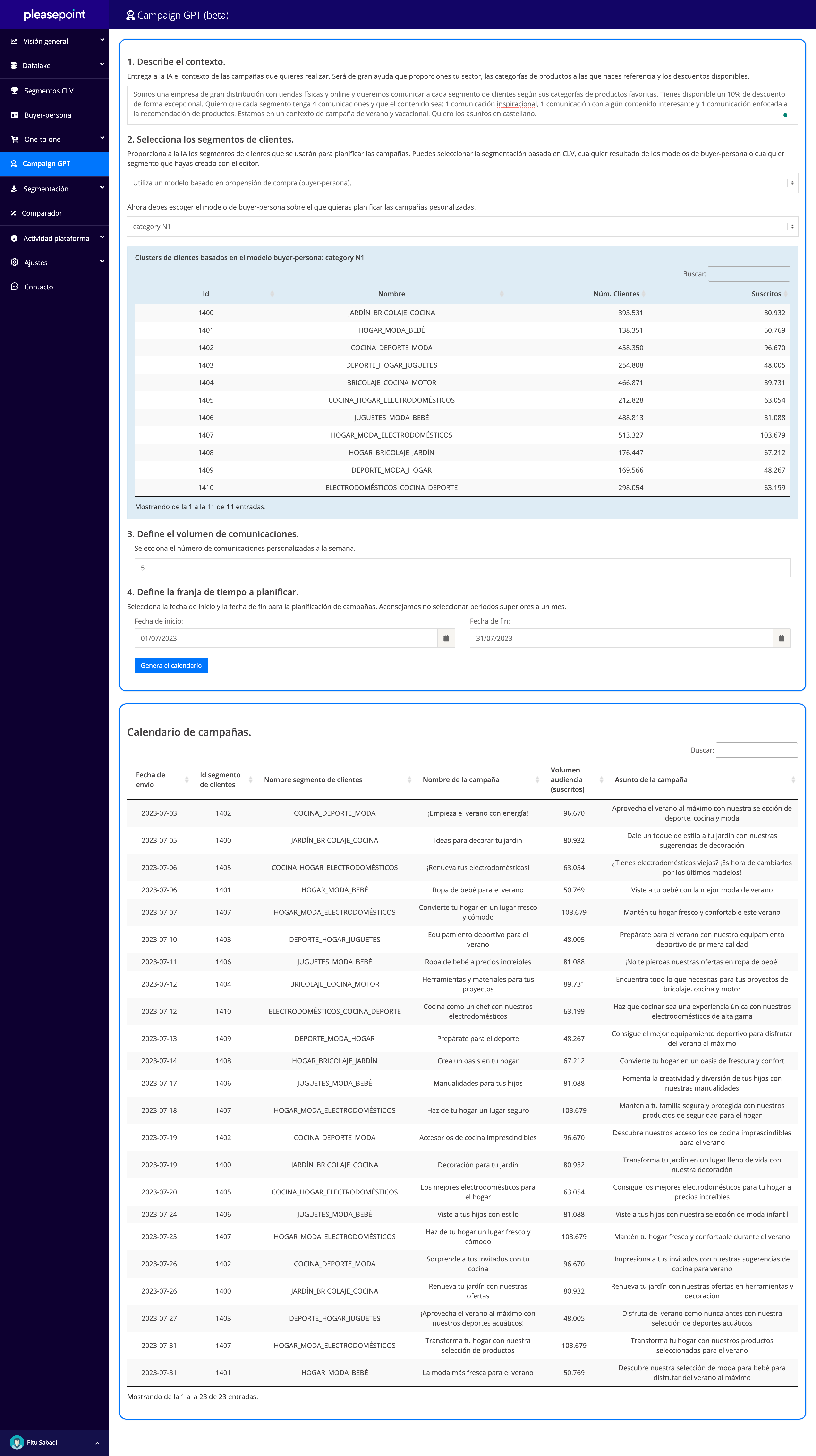 Imagina una herramienta que automatice la planificación de campañas personalizadas, eliminando la necesidad de realizar análisis de datos exhaustivos y extracción de información clave.