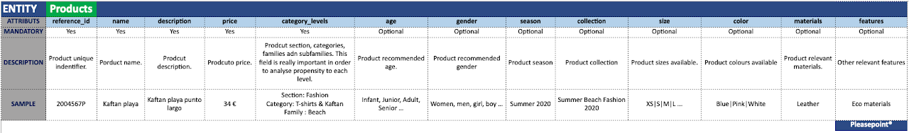 En este artículo te describimos la arquitectura de datos necesaria para empezar a utilizar la inteligencia artificial de Pleasepoint. Aquí encontrarárs toda la información sobre las entidades iniciales de datos, sus atributos y el formato que necesitas extraerlos para una primera carga utilizando archivos CSV.