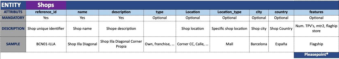 Descripción del modelo de datos utilizado en la plataforma de Pleasepoint. Este artículo está pensado principalmente para la carga inicial de datos.