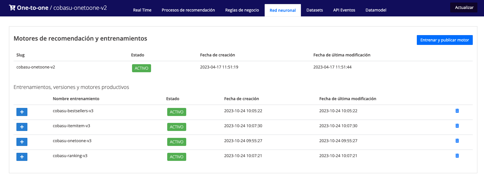 - Engine: Identificador del modelo de recomendación one-to-one a utilizar. Puedes ver los valores en el módulo one-to-one en el constructor de módulos o en el ejemplo de llamada API de recomendación one-to-one.