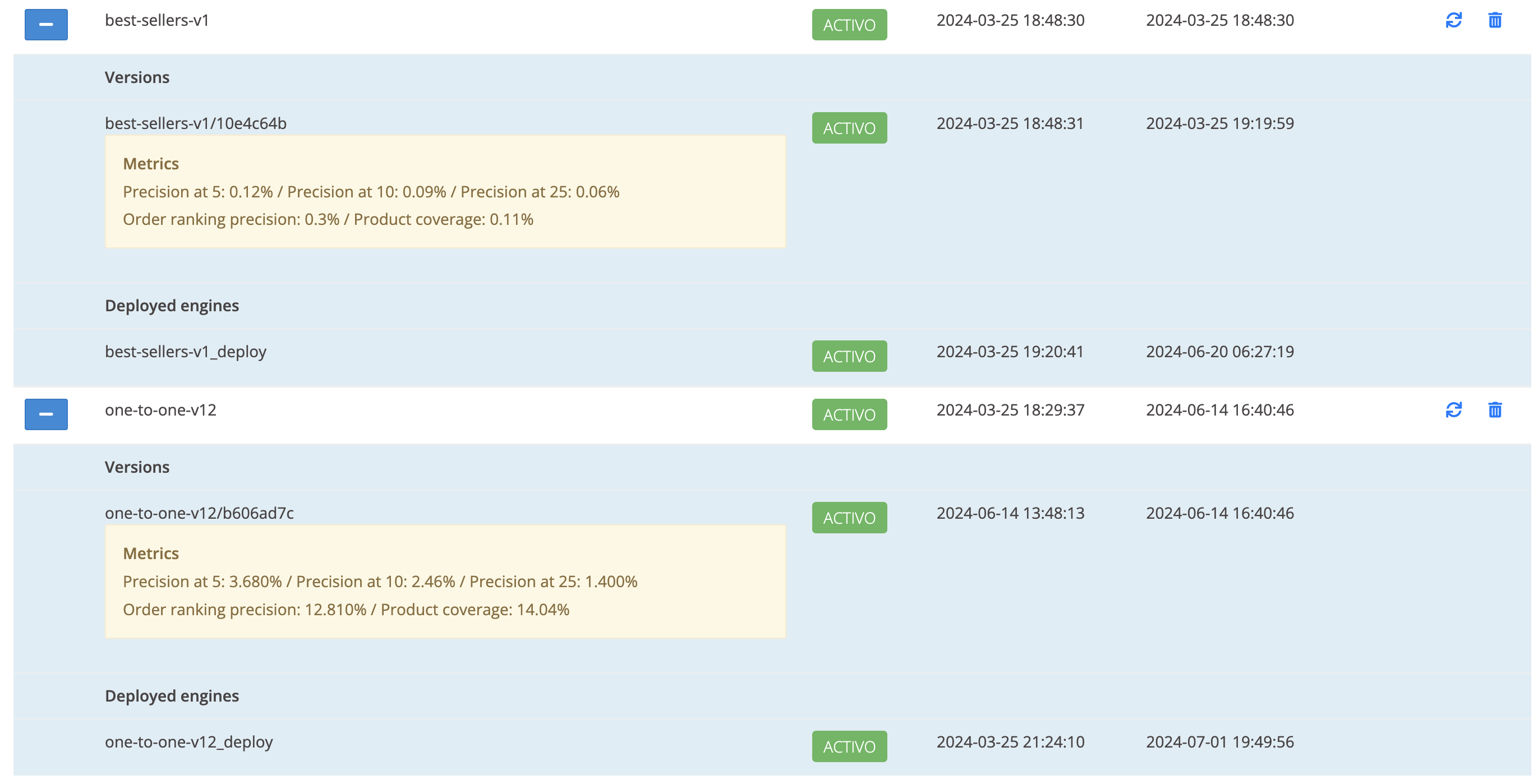 Estos indicadores nos permiten cuantificar cuánto mejor es la recomendación one-to-one en términos de relevancia para el usuario y la diversidad de productos recomendados durante la experiencia de compra en tiempo real en el eCommerce.