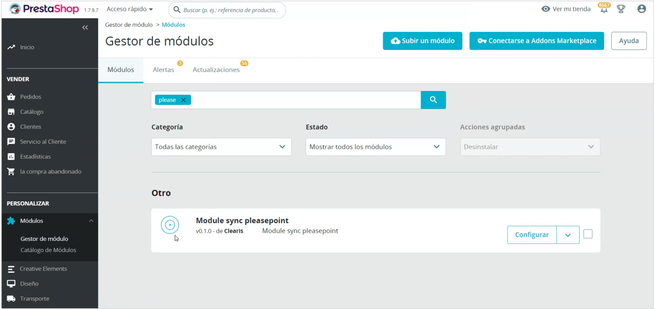 Una vez lo tengas descargado, ve al backoffice de tu PrestaShop y, desde la sección de módulos, sube el archivo descargado para instalar el módulo.