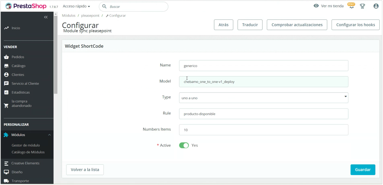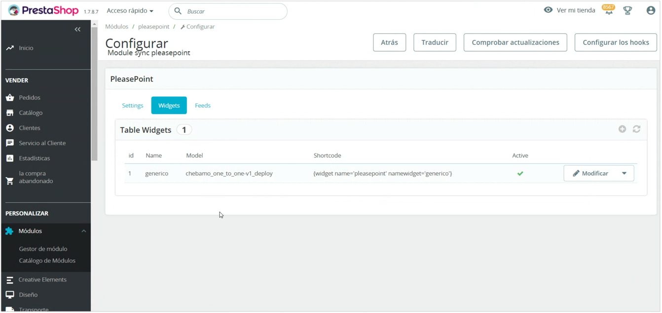 Para mostrar las recomendaciones en tu tienda, necesitarás crear un widget en PrestaShop. Así pues, en la configuración del módule de Pleasepoint para PrestaShop accede a la pestaña widgets.