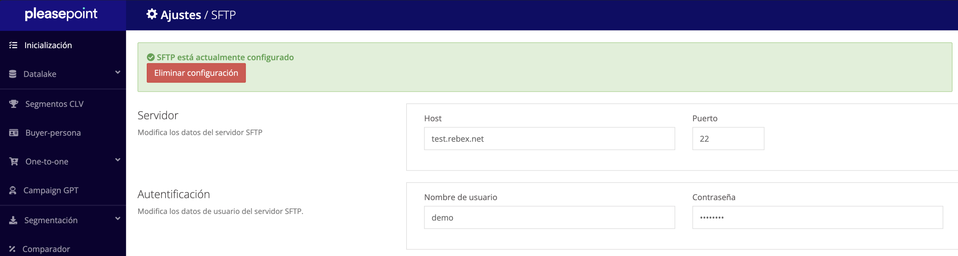Para aprovechar al máximo los modelos de inteligencia artificial de Pleasepoint exportando los datos hacia tu CRM, necesitas configurar una conexión sFTP (Secure File Transfer Protocol).