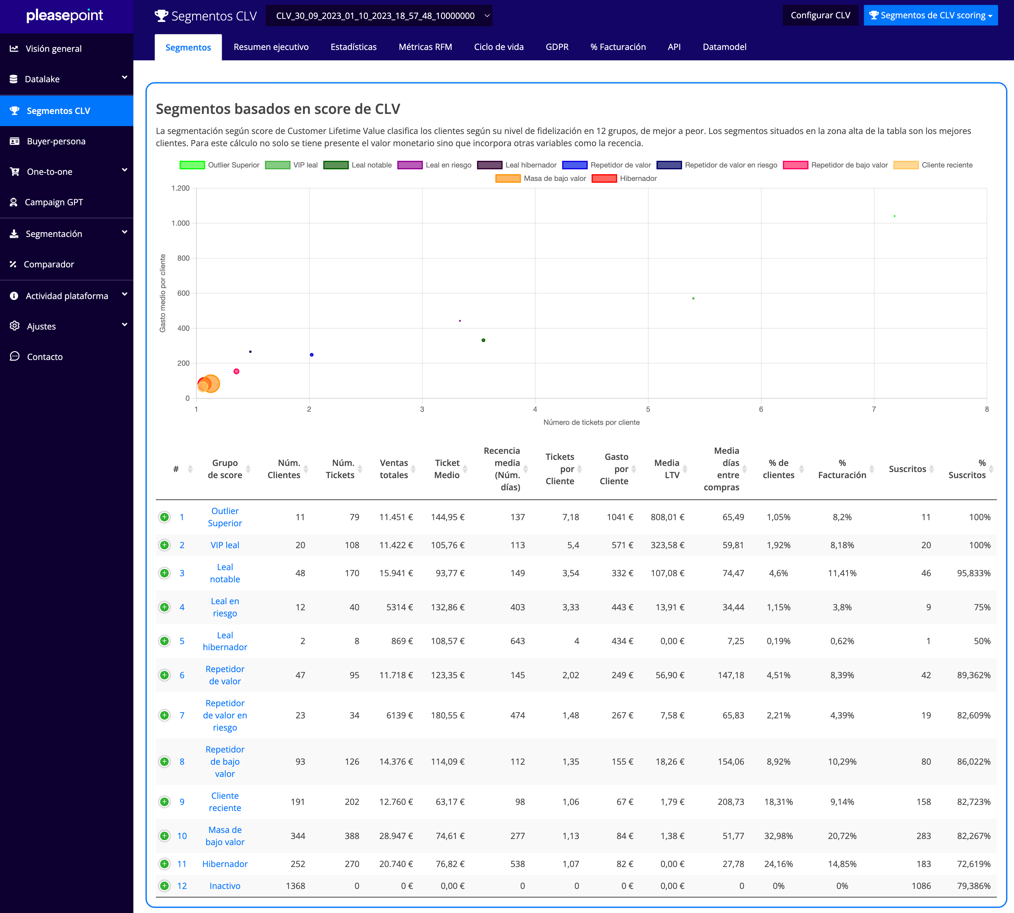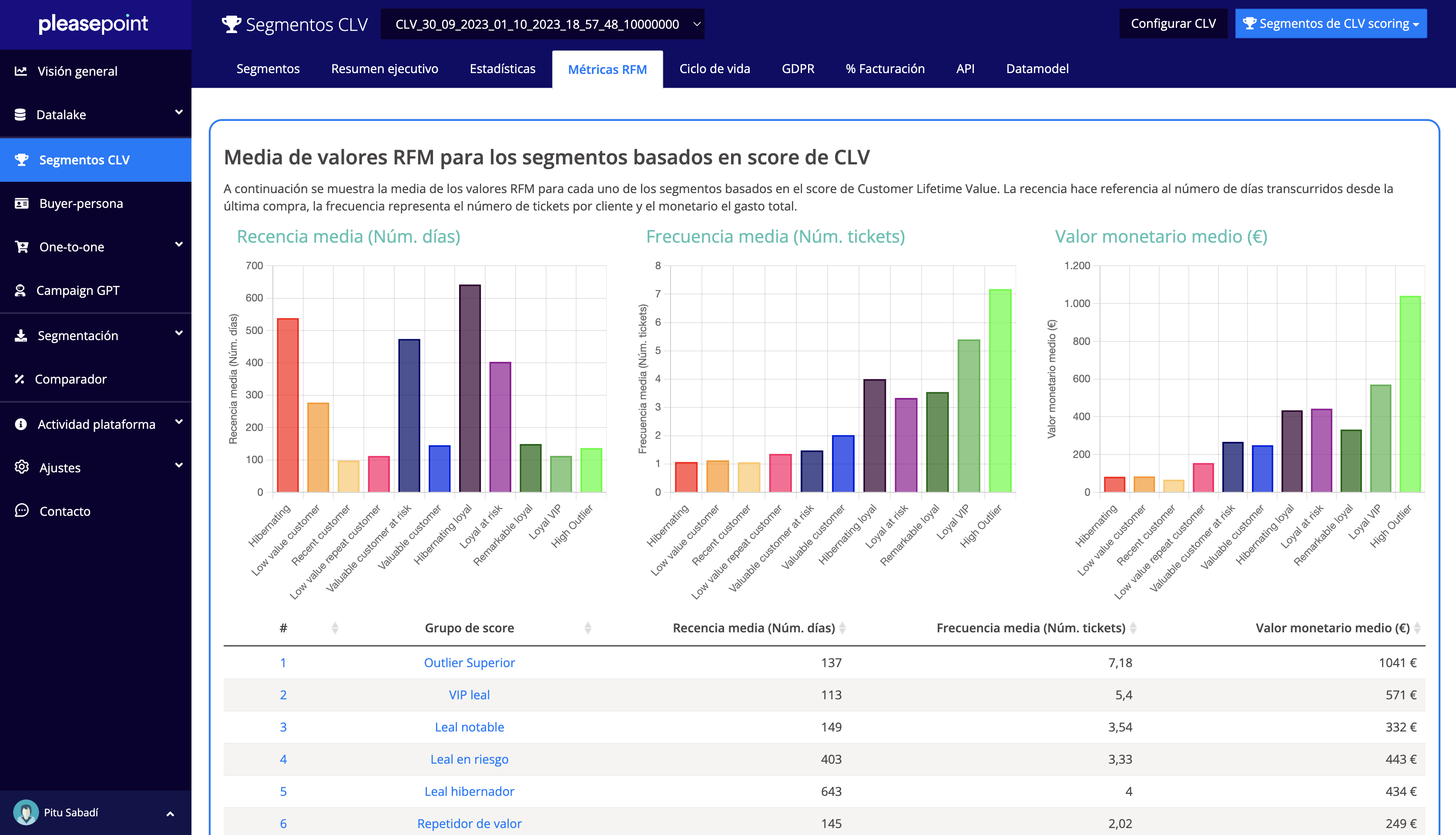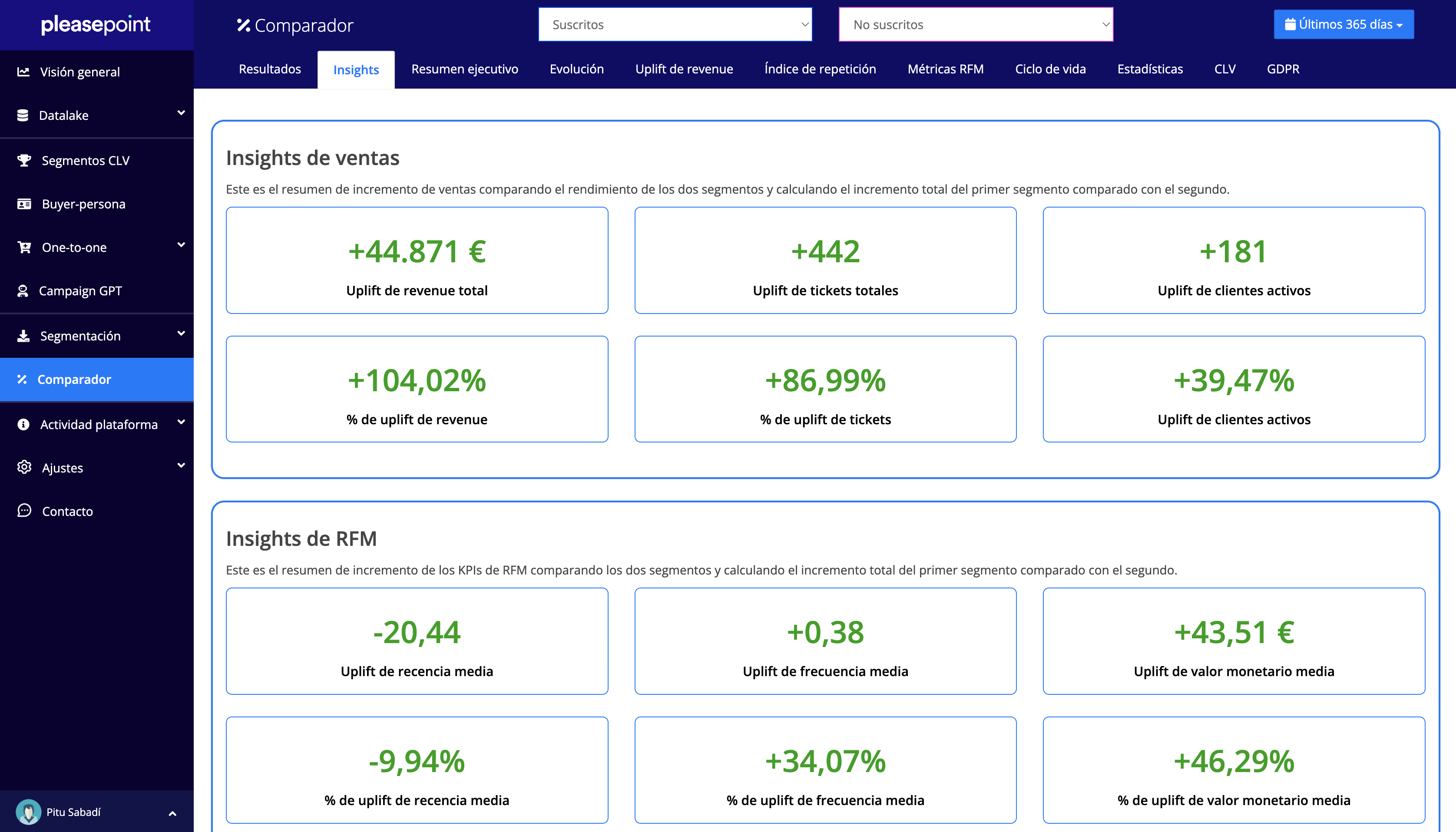 Puedes aprovechar estos segmentos en los modelos de buyer-persona y recomendación one-to-one, así como en el comparador para medir los aumentos en las ventas.