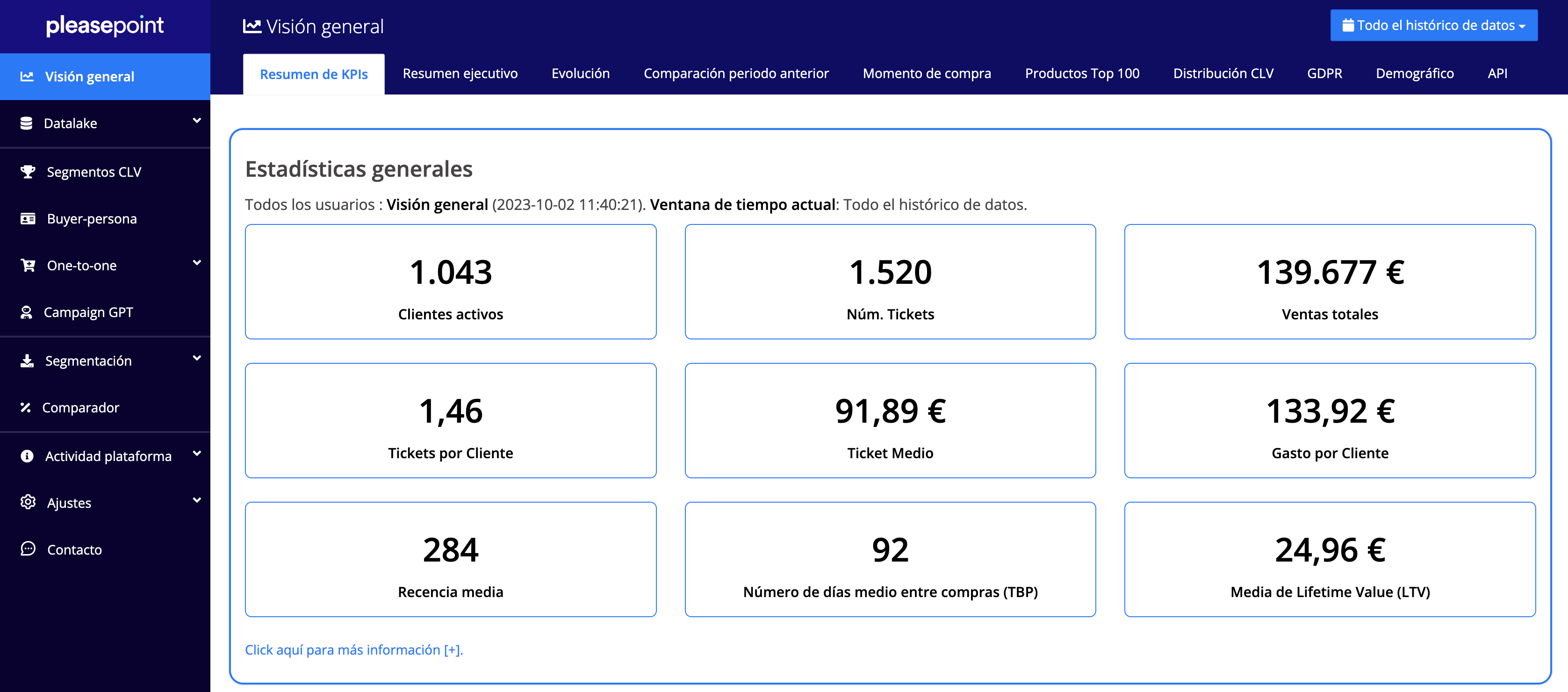También desde este momento tienes calculados los KPIs principales de consumo, tanto a nivel general como de los segmentos básicos de clientes.