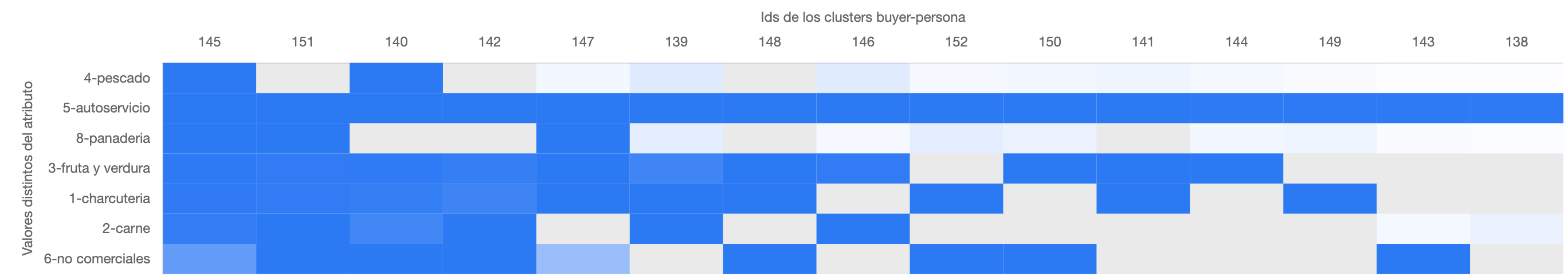 Ejemplo de clasificación de clientes según la tipología de productos que compran. En este caso mostramos el nivel superior de categorías de productos, aunque podrías trabajar en cualquier nivel de la jerarquía de productos.