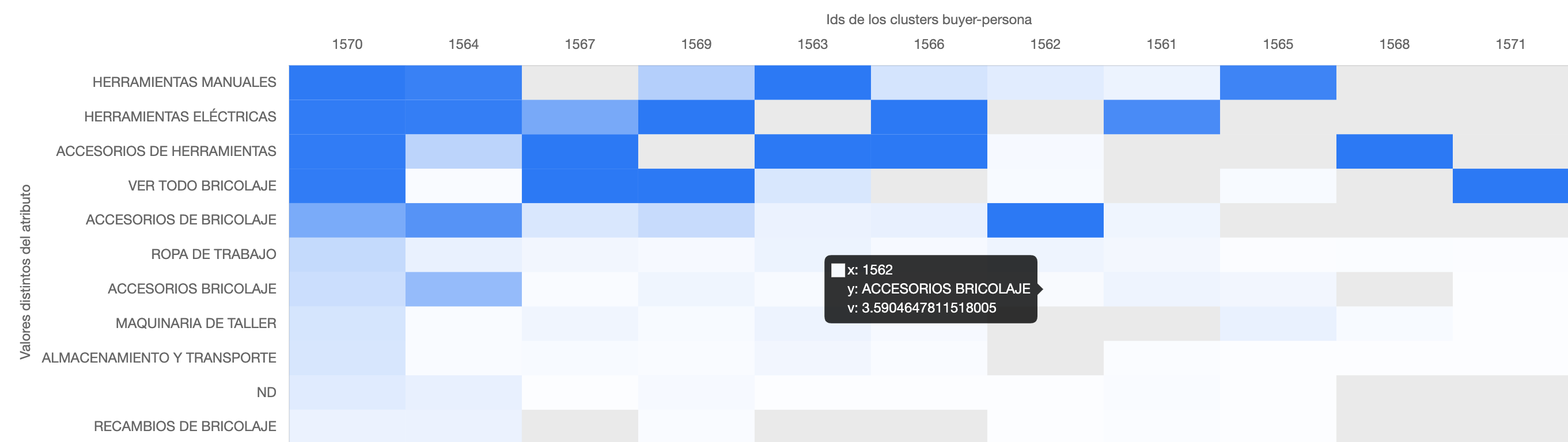 - El color de la celda indica la propensión. Cuanto más intenso el azul mayor es la propensión. El gris indica propensión nula.