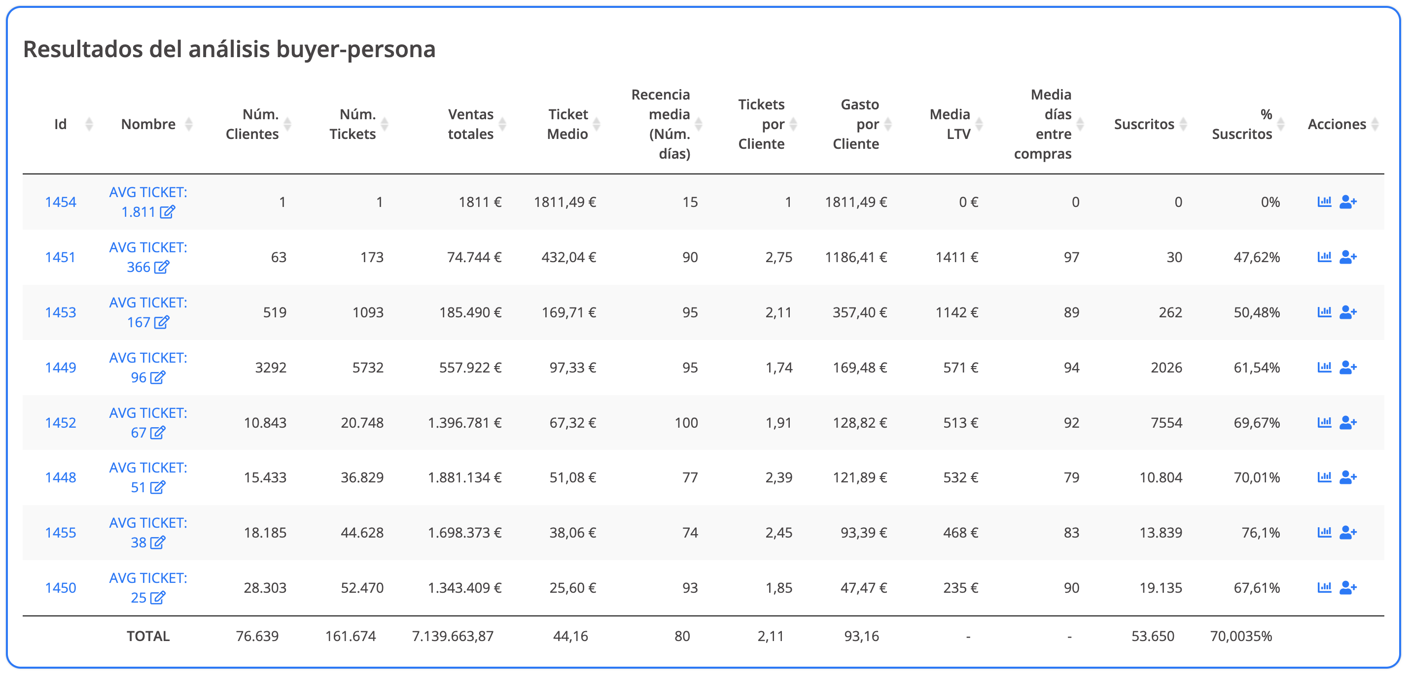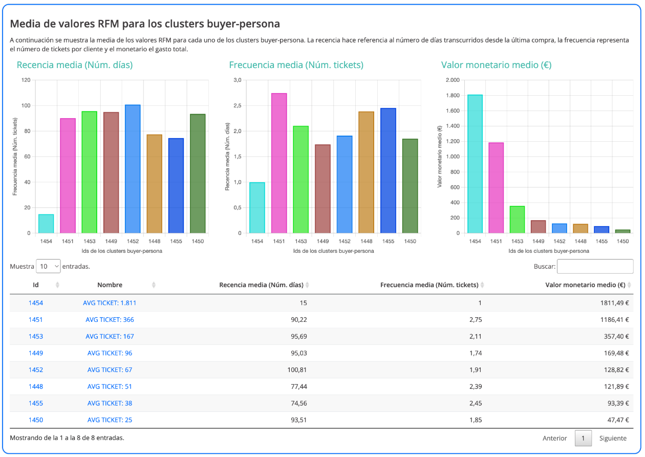 En este caso el modelo de propensión está trabajando con el ticket medio de las compras de cada cliente. De esta forma entendemos el tamaño de las compras habituales de cada cliente para ajustar nuestras promociones a su presupuesto.