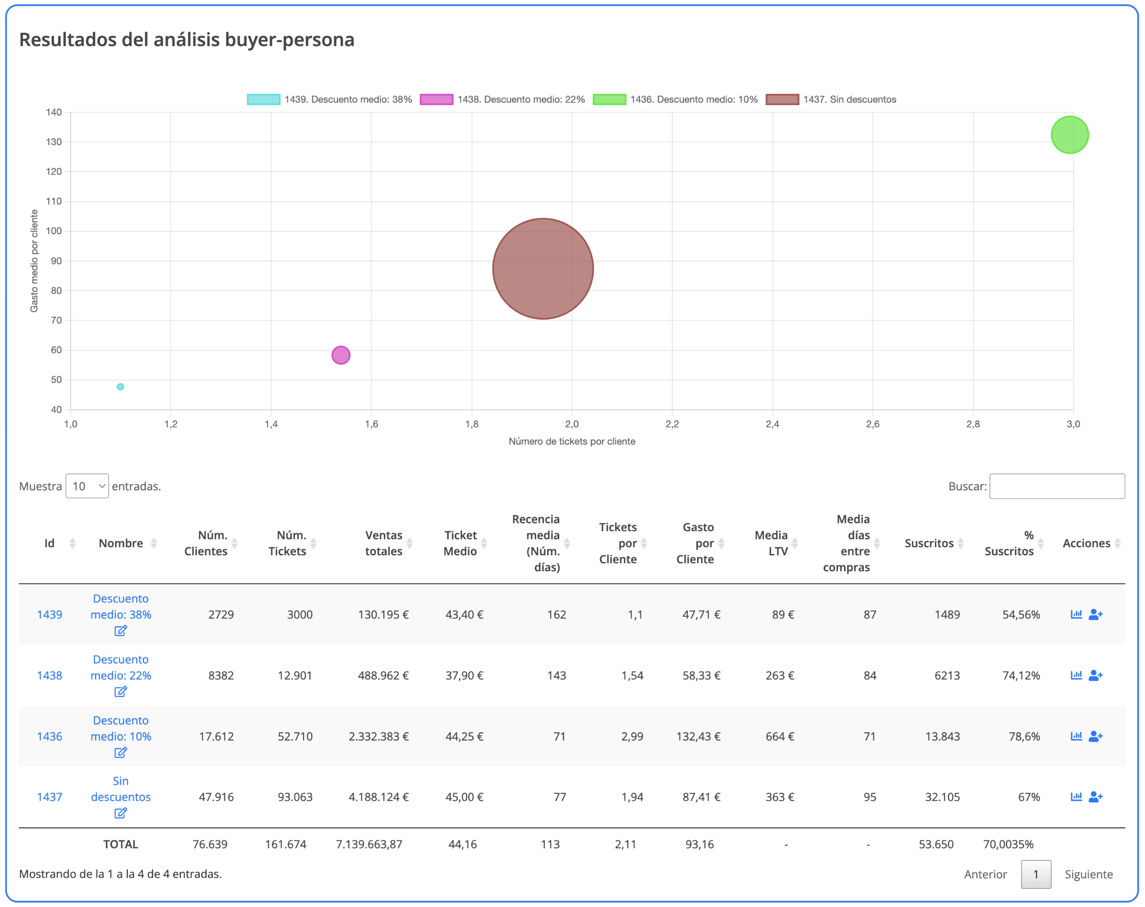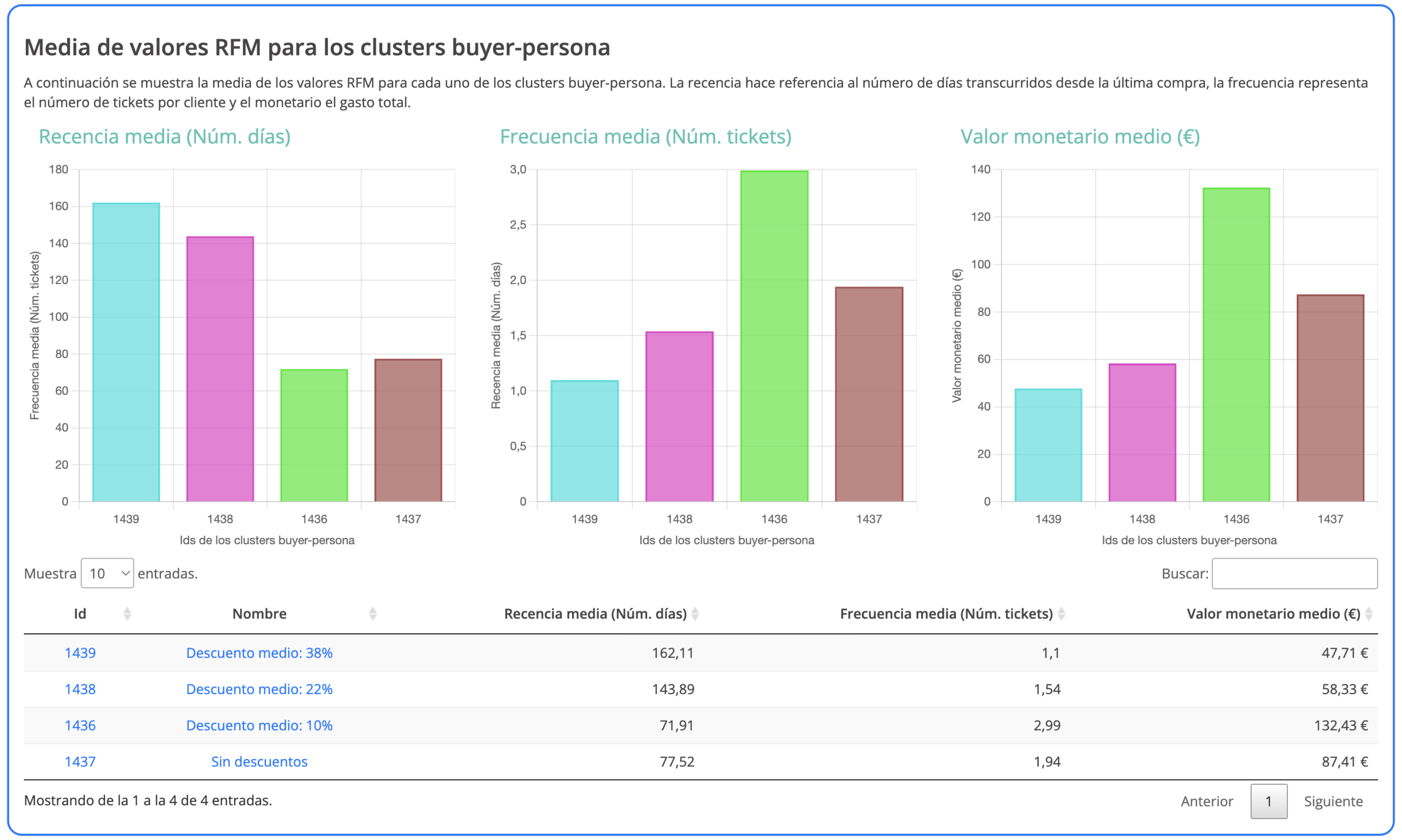 En la imagen puedes ver cómo se han creado cuatro grupos de clientes según su sensibilidad al descuentos.