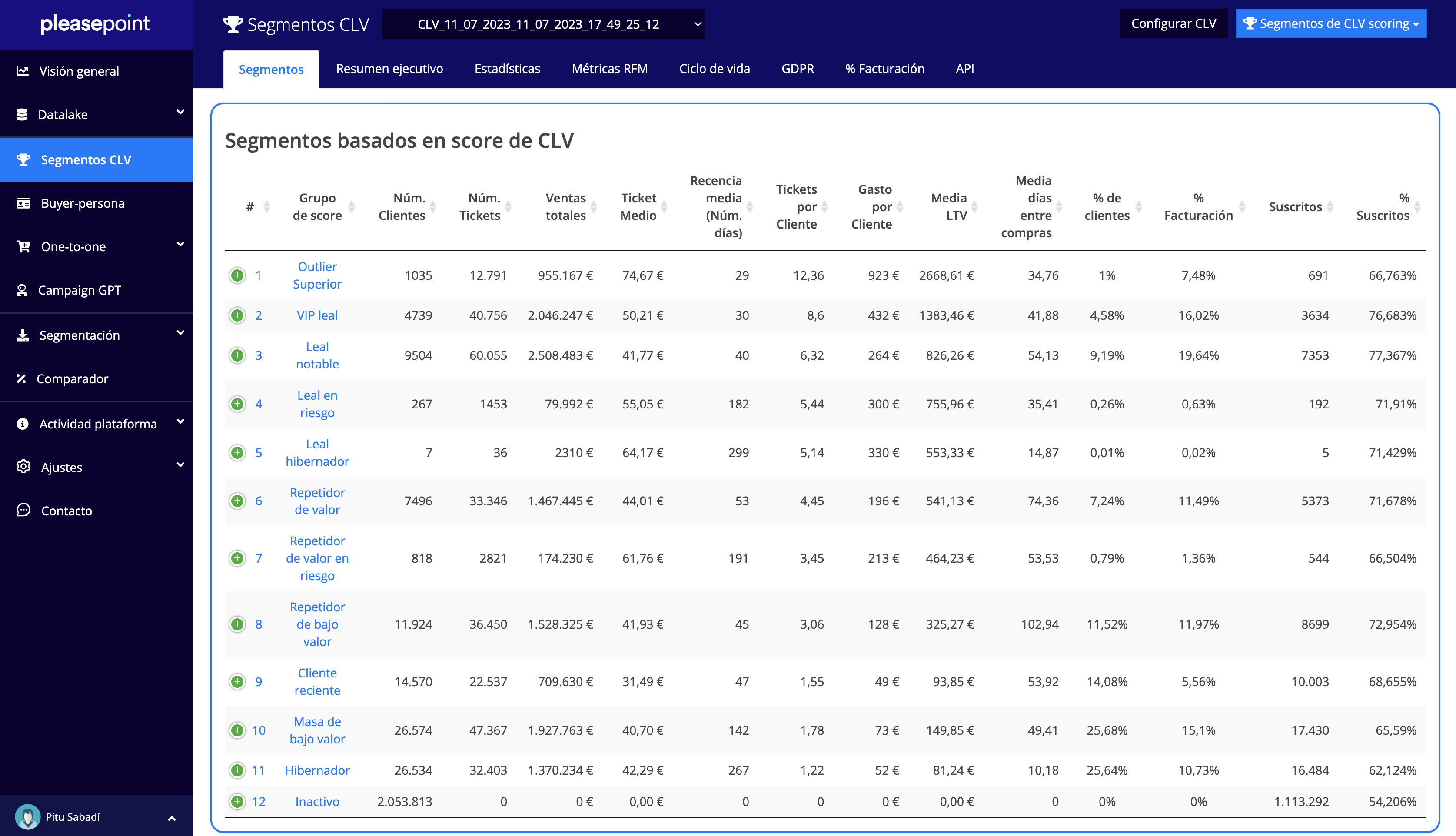 Gracias a los modelos predictivos de Pleasepoint nuestro usuario puede identificar qué clientes están dentro del ciclo de compra y cuales están fuera.