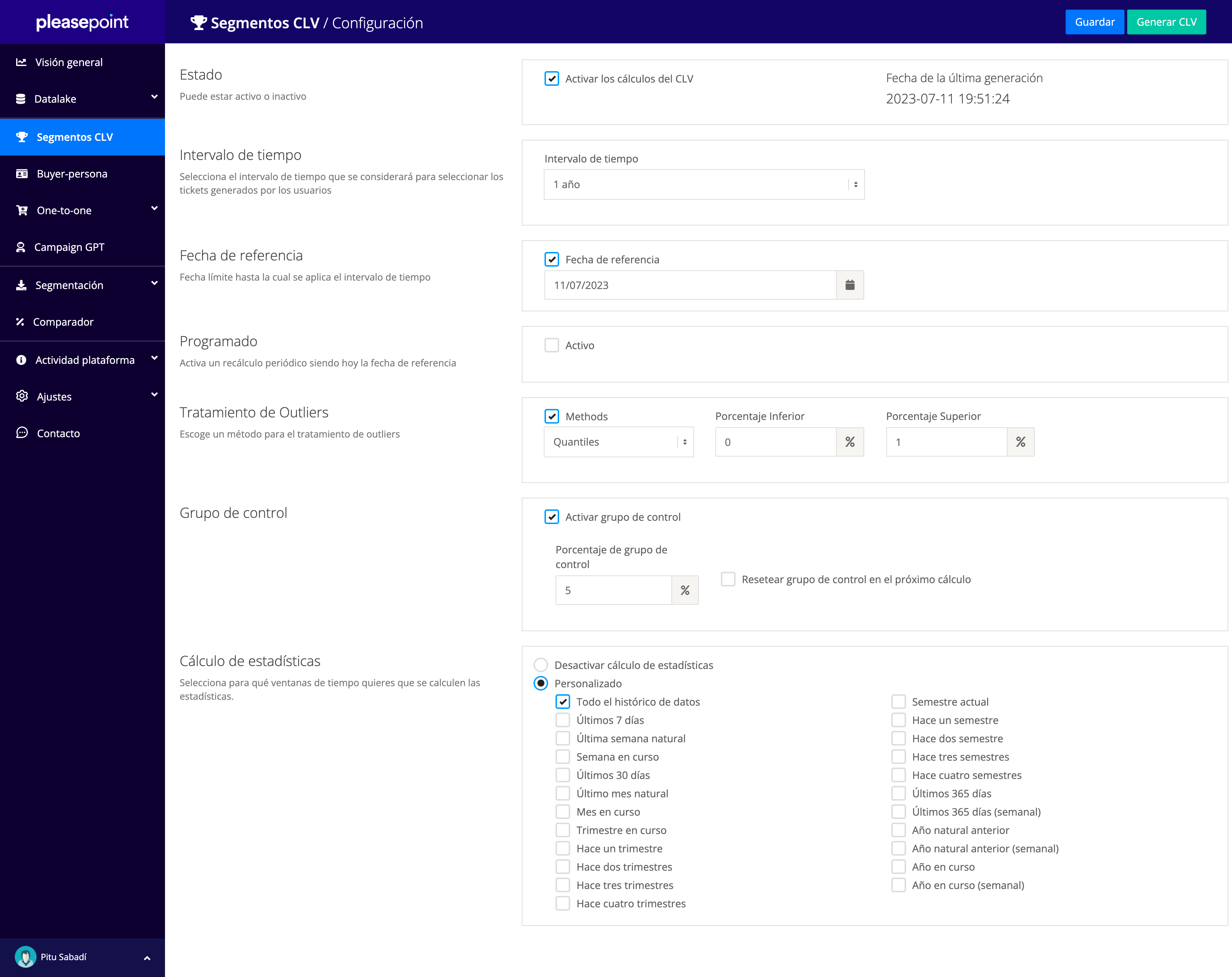Para crear el grupo de control debes antes configurarlo en el módulo de segmentación según Customer Lifetime Value.