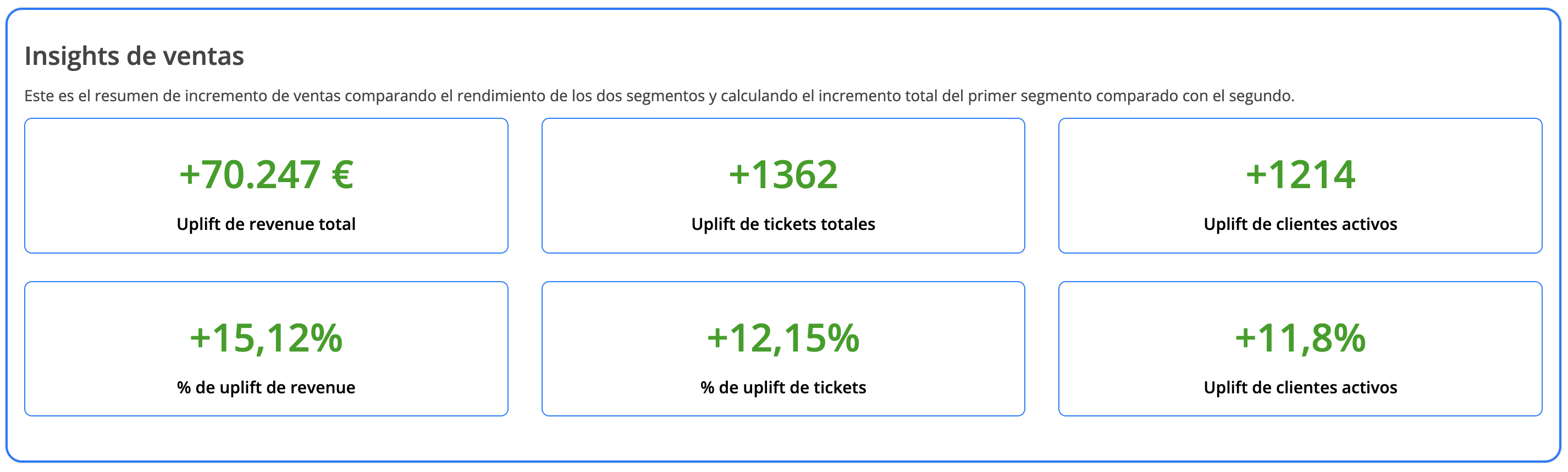El módulo de comparación te calcula automáticamente el rendimiento entre dos segmentos de clientes.