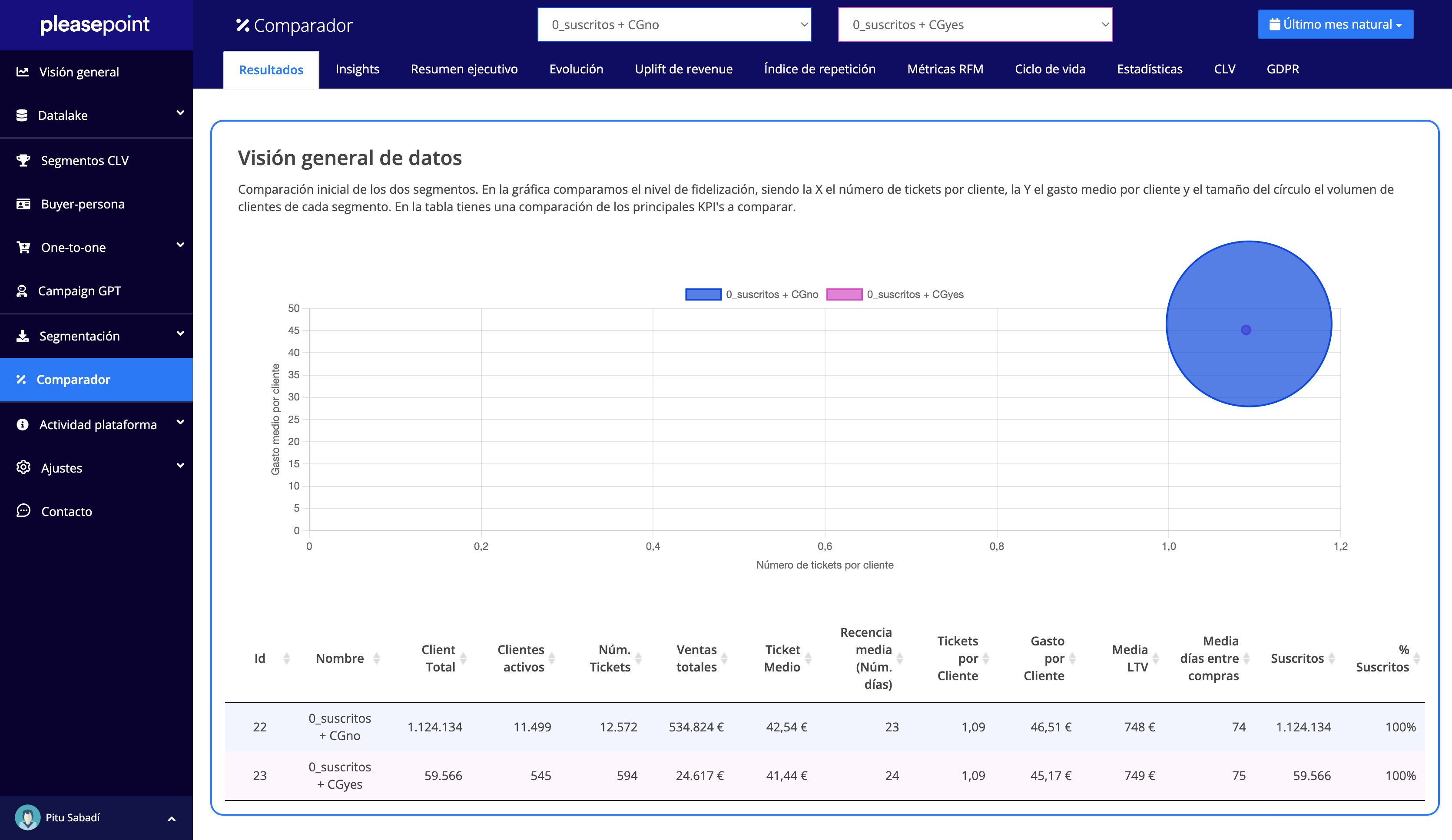 La creación de un grupo de control homogéneo con Pleasepoint es rápida y sencilla, lo que nos permite comparar los resultados y evaluar el verdadero impacto de la personalización en la estrategia de reposición de productos.
