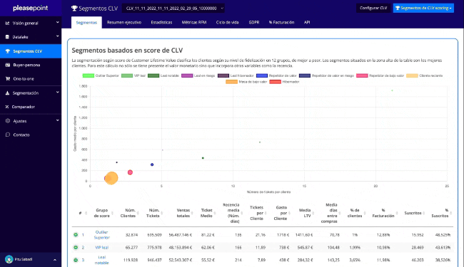 Clasifica automáticamente los clientes según su valor. +85% de incremento medio de CLV.