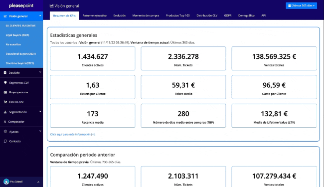 Conecta Pleasepoint con tus sistemas para actualizar los datos, enriquecer los clientes en el CRM, híper-personalizar la interacción en el eCommerce y visualiza los KPIs de clientes en tus dashboards de negocio. Descubre los casos de uso de Pleasepoint.