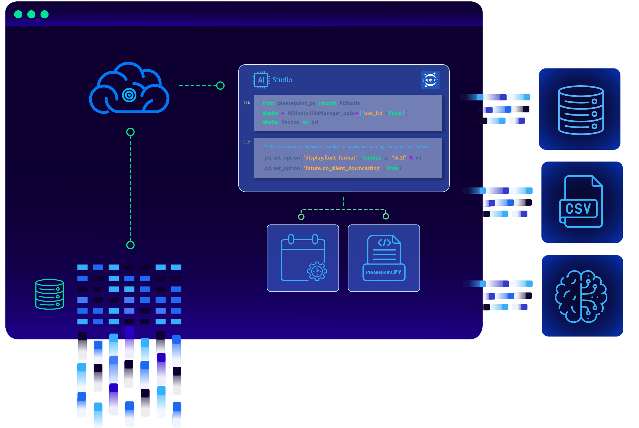 Utiliza tus datos en IAs generativas de una forma totalmente segura. Tus datos nunca salen de tu espacio.