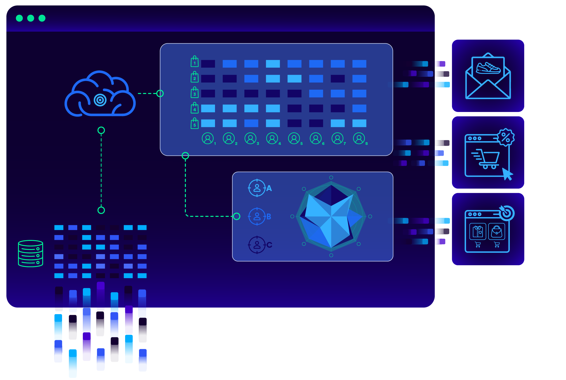 Identifica los perfiles de clientes más rentables. Activa palancas según los patrones de compra.