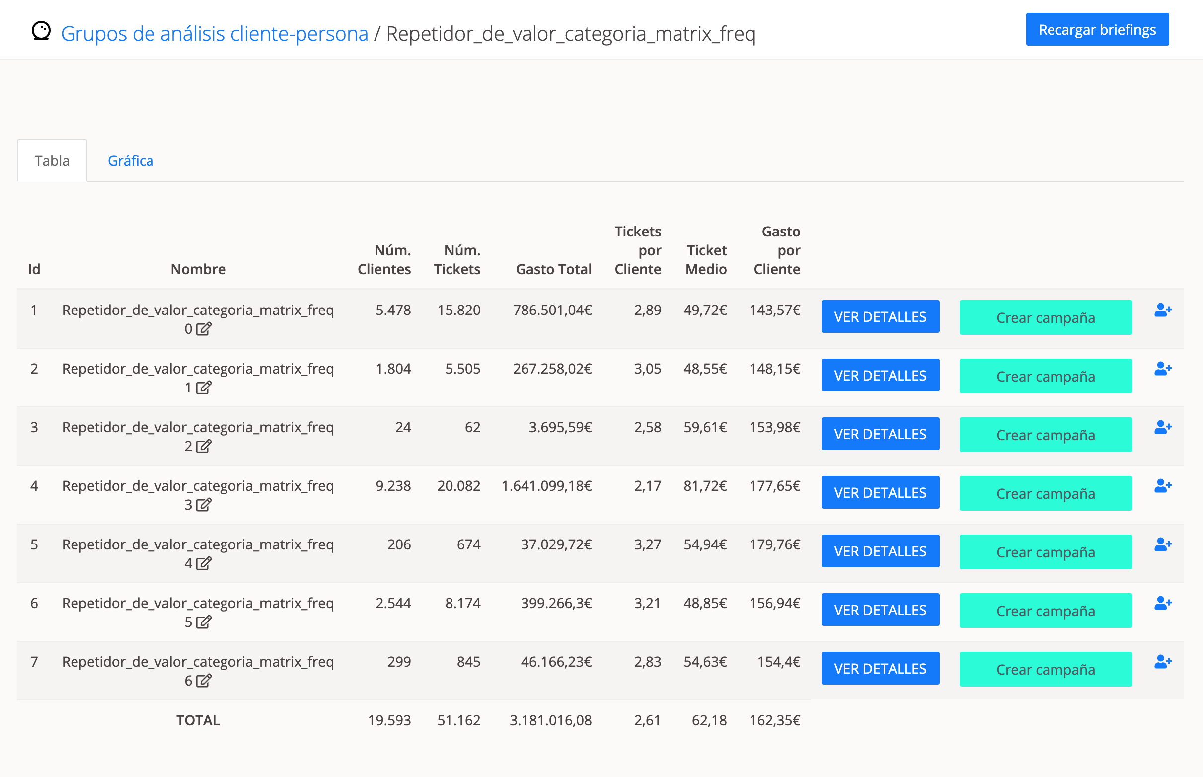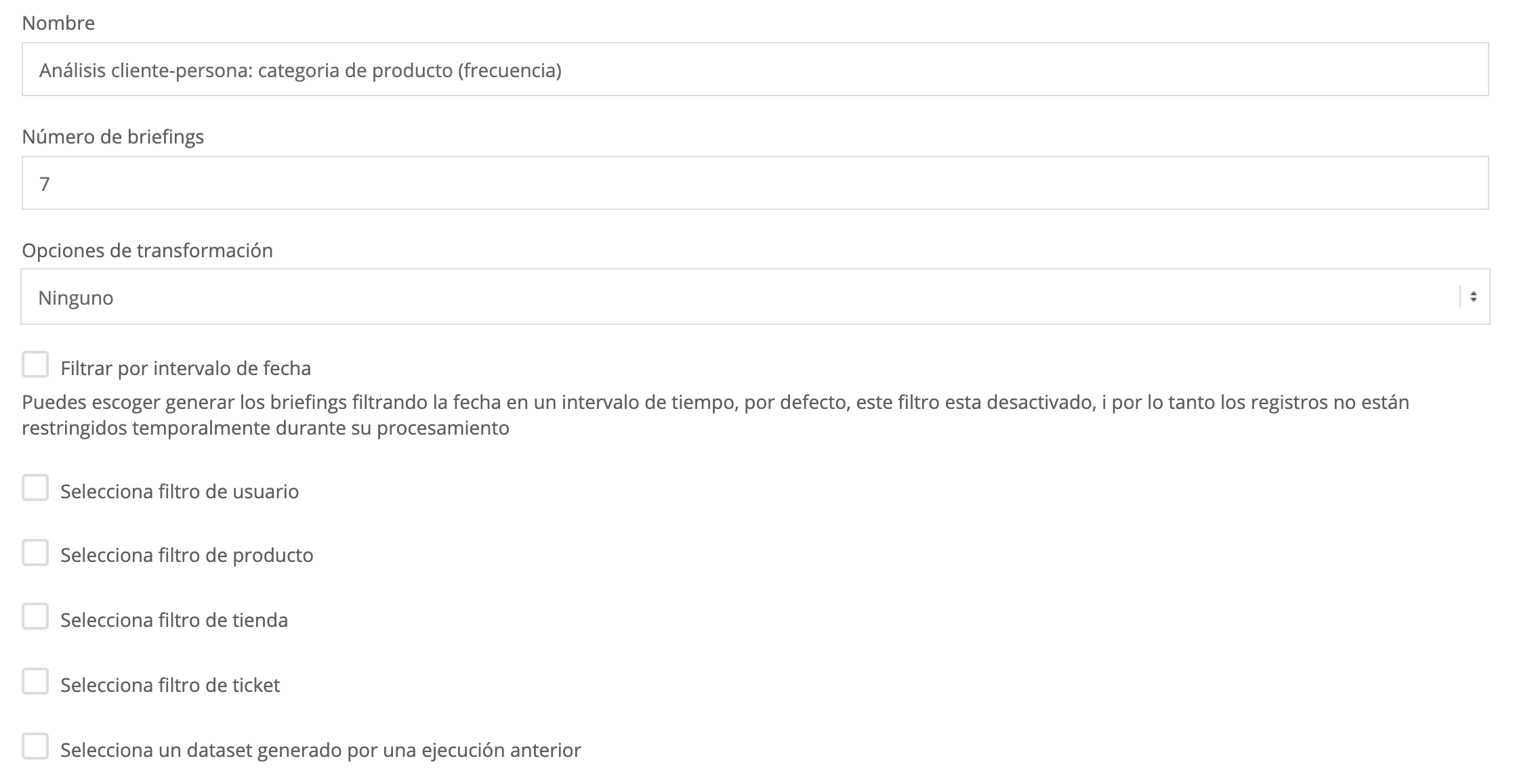 - Número de briefings: Selecciona el número de grupos de clientes que quieres crear. En este punto te recomendamos empezar por un número entre 3 y 9.