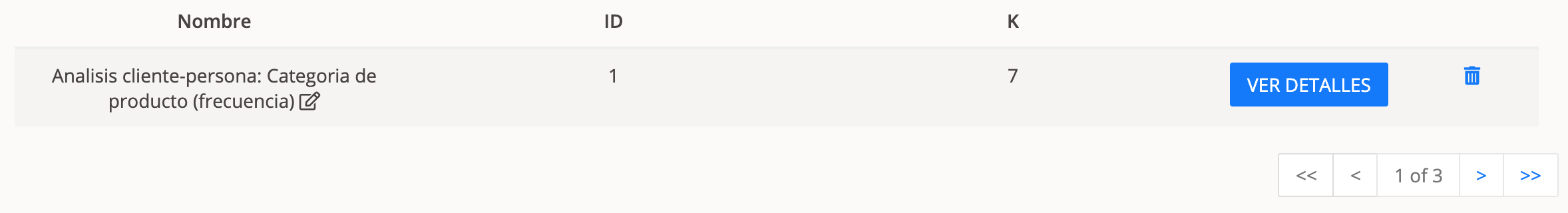 Para acceder a los resultados del análisis cliente-persona haz click a Análisis predictivo y en la sección de Análisis cliente-persona busca tu análisis en la lista. Recuerda que si has hecho más de diez ejecuciones tienes un paginador en la parte inferior derecha de la tabla.