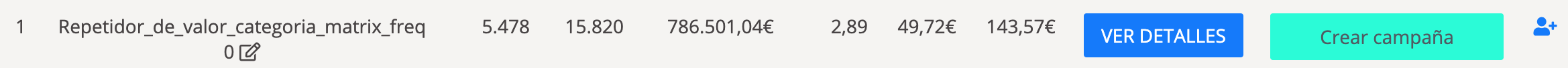 En la tabla de clústers haz click a Crear campaña y automáticamente se creará una campaña con el mismo nombre que el cluster y con la audiencia de clientes ya seleccionada.