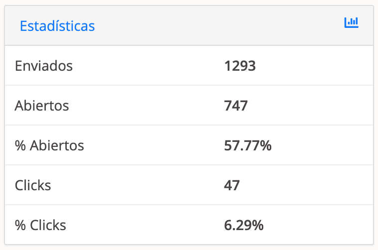 - Gráfica interactiva. Haciendo click sobre Sends, Opens y Clicks visualizarás la información por separado.