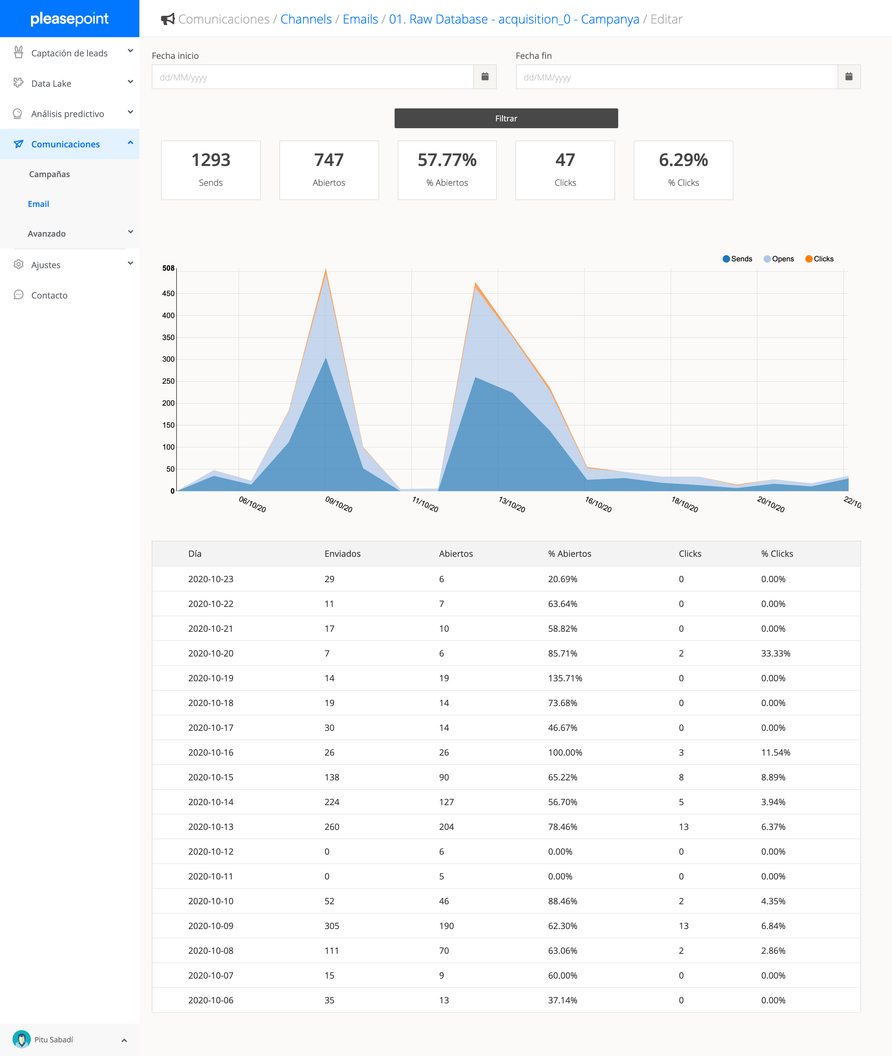 - Tabla con resumen diario. Para que veas la evolución de los envíos.