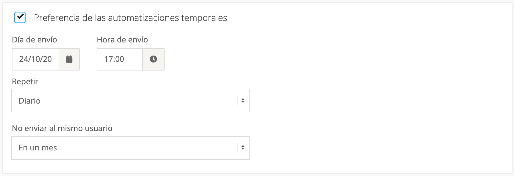 Hemos configurado que a partir de un día determinado, la automatización se envíe cada día y que un mismo usuario solo recibirá el correo una vez al mes.