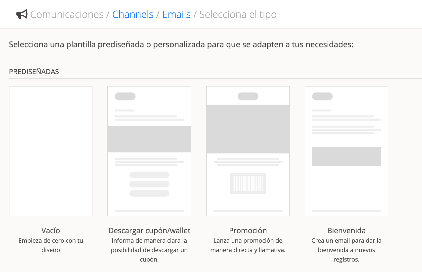Selecciona una plantilla, por ejemplo la de Bievenida y asigna un nombre a tu email.