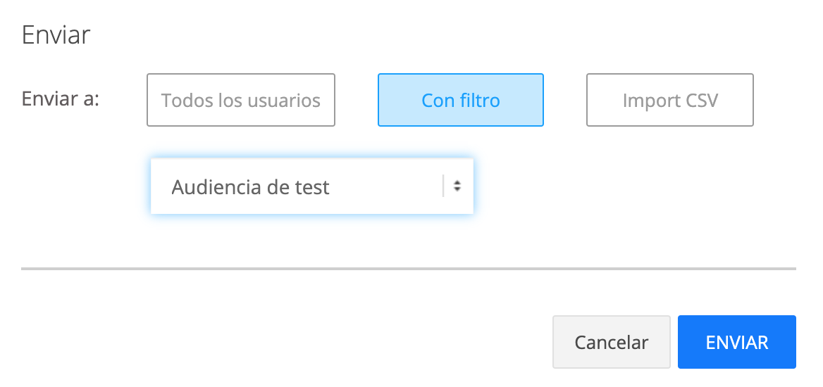 Haz click sobre filtro y seleccciona la audiencia de test.