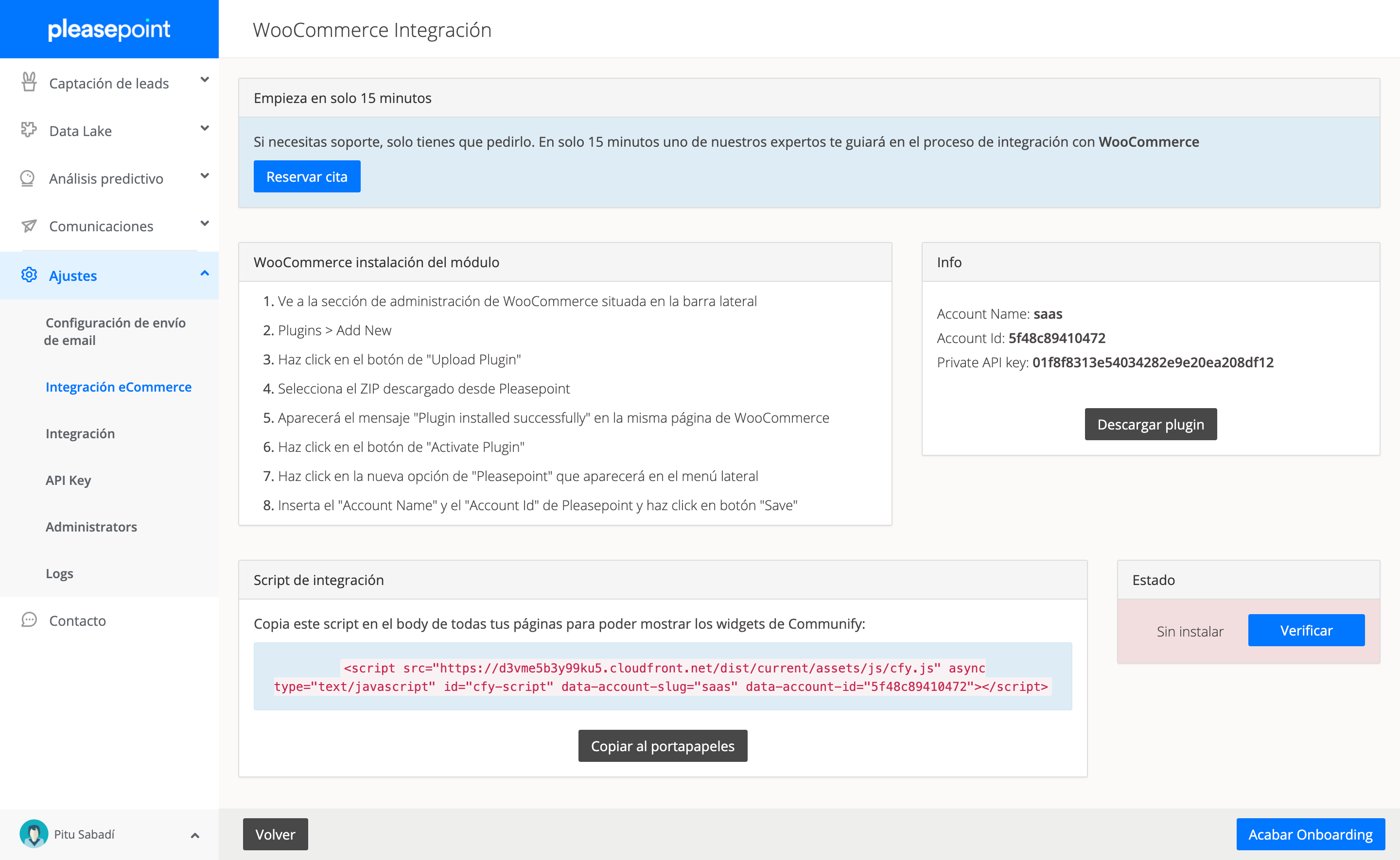 4. Connecta el módulo de WooCommerce con tu cuenta de Pleasepoint